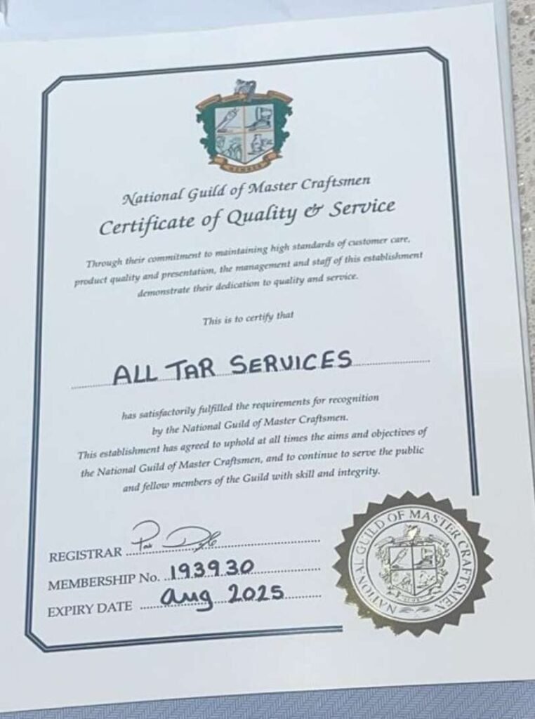Yes — All Tar Service is fully registered and insured. Our team is trained, certified, and committed to delivering safe, professional workmanship on every project.